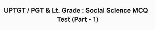 UPTGT / PGT & Lt. Grade : Social Science MCQ Test 08/11/202508/11/2025 Manoj Singh UPTGT/PGT — SST 30 MCQ UPTGT/PGT — SST 30 MCQ Practice Set -1 समय: 00:00 Submit Reset स्कोर: / 30 — % Time taken: Post Views: 725